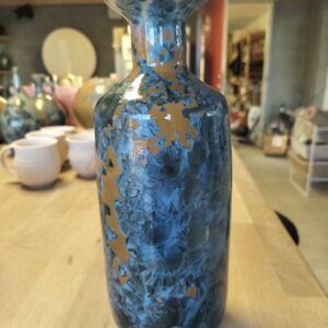 Blue-crystalline-on-orange glazed vase, Japandi (Copy)